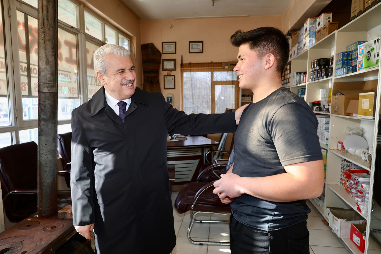 Güneysınır ilçe ziyareti kapsamında son olarak ilçe esnafı ve vatandaşlarla bir araya gelen Vali Akın, esnaflar ile bir süre sohbet ederek hayırlı ve bereketli kazançlar temennisinde bulundu.(Yunus Köroğlu)