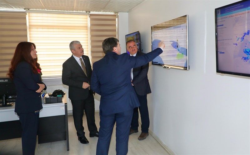 Vali İbrahim Akın, ayrıca Bölge Tahmin ve Erken Uyarı Merkezinde incelemelerde bulunarak, merkezde görev yapan personelle sohbet etti.