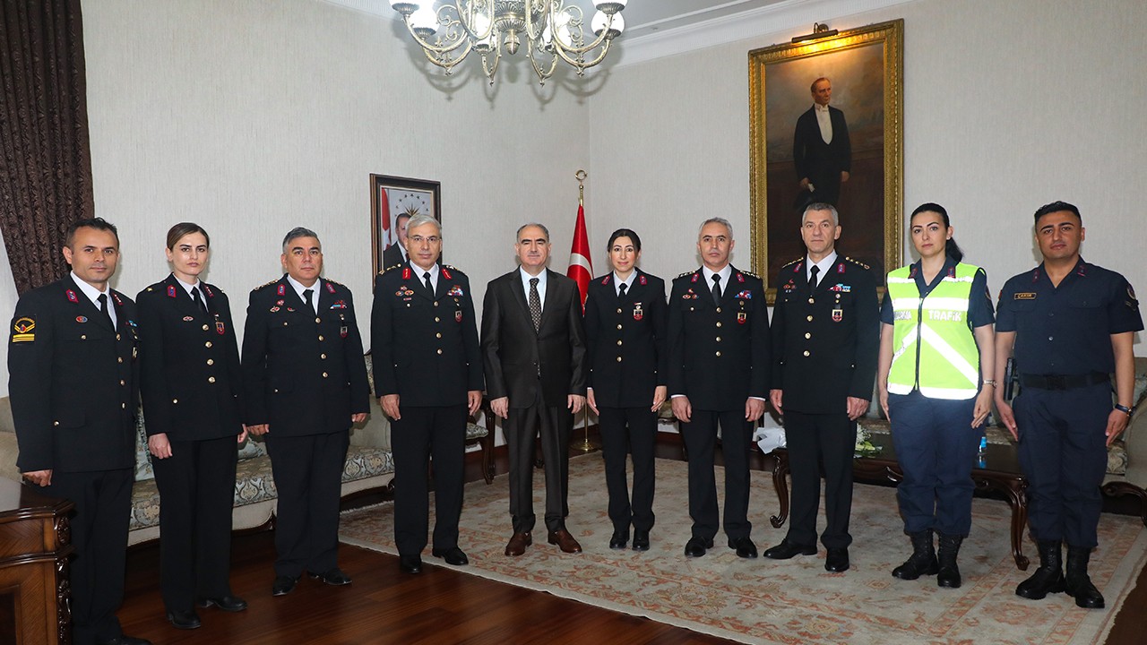 Vali Vahdettin Özkan, Jandarma Teşkilatı’nın 184. kuruluş yıl dönümü nedeniyle İl Jandarma Komutanı Tümgeneral Şakir Uslu ve beraberindeki heyeti makamında kabul etti.