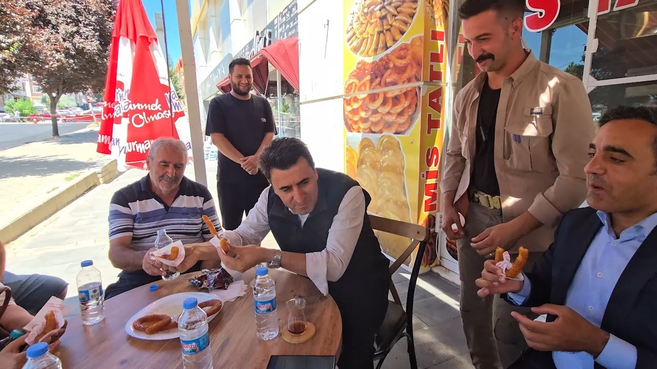 Vali Aygöl, Atatürk Mahallesi’nde sıcak asfalt çalışmalarını yerinde inceleyerek, mahalle sakinleriyle birlikte asfalt serdi. Çalışmalar sırasında mahalledeki bir tatlıcı dükkanına giren Vali Aygöl, beraberindekilere tatlı ısmarladı. Vali Aygöl, önceki gün maruluna çiğ köfte koymayı unuttuğu polis memuruna tatlı ikram ederek, “Kardeş sen neredesin? Çiğköfte akşam, ancak bak şimdiden 2 tatlı. Afiyet olsun ağabeyciğim. İşi tatlıya bağladık. Polislere sahip çıkmam lazım” dedi. Vali Aygöl’ün tatlı ikramı, çevresindekileri gülümsetti.