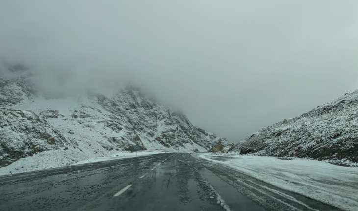 Bazı sürücüler, 3 bin rakımlı Karabet Geçidi'nde araçlarına zincir takarak ilerleyebildi. Yola zincirsiz çıkanlar da uzun süre beklemek zorunda kaldı.