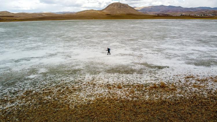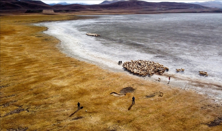 Van'ın Saray ilçesinde 371 hektar alanı kaplayan Tuz Gölü, aşırı sıcaklık ve buharlaşma nedeniyle tamamen kurudu.