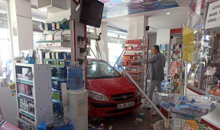 Aydın’ın Didim ilçesinde meydana gelen kazada kadın sürücünün vitesi geriye değil, ileriye takması sonucu hareketlenen otomobil eczaneye girdi.