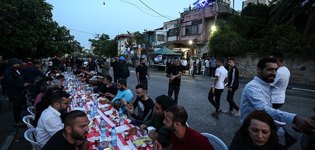 İsrail’in evlerinden zorla çıkarmak istediği Filistinliler, kendilerine destek verenlerle Şeyh Cerrah Mahallesi'ndeki evlerinin önünde iftar sofrası kurdu.