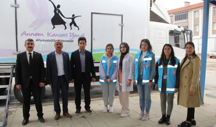 Yalıhüyük'te Toplum Sağlığı Merkezi (TSM) Mobil Sağlık Merkezince, kadınlara yönelik kanser taraması gerçekleştiriliyor.