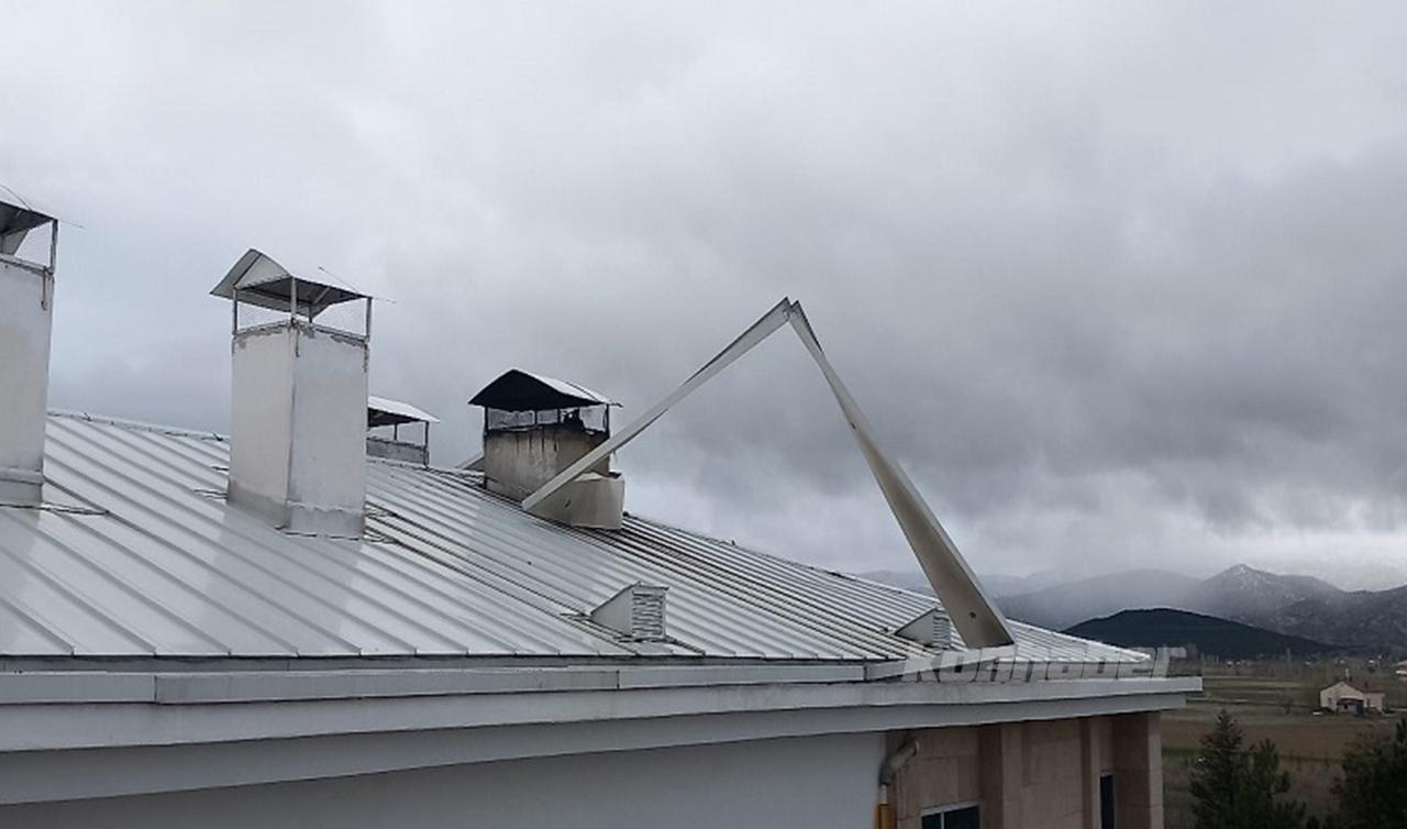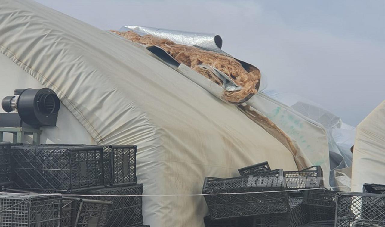 İki gündür etkisini gösteren rüzgar, ilçede bulunan mantar seralarının bir kısmına zarar verdi.