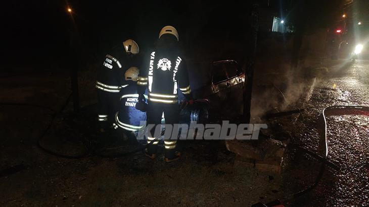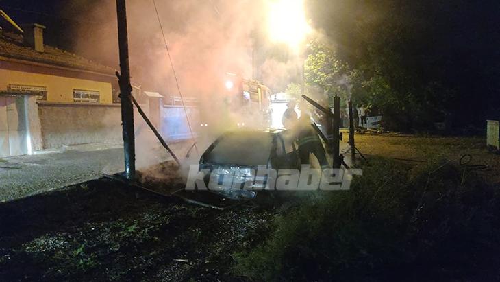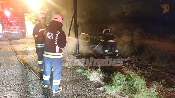 Gece park ettiği otomobili alevler içinde gören Bardakça neye uğradığını şaşırdı. İtfaiye ekipleri tarafından söndürülen otomobilden geriye sadece demir yığını kaldı.