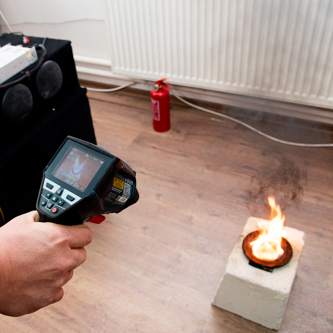 Taşpınar, doktora tezi çalışmasında yangının görüntü işleme algoritmalarıyla tespit edilip ses dalgalı yangın söndürme sistemiyle alevlere müdahale edilmesine olanak tanıyan 3 aşamalı bir yazılım geliştirdiğini belirterek “Yazılım tarafından tespit edilen yangını, ses dalgalı yangın söndürme sistemi ile söndürebiliyoruz. Bu çerçevede Konya Teknik Üniversitesi Teknik Bilimler Meslek Yüksekokulu Müdürü Prof. Dr. Mustafa Altın’ın inşaat ve yangın alanındaki tecrübelerinden faydalanarak deneyler gerçekleştirdik. Deneyler öncesinde özel olarak yangın odası inşa ettik. Ses dalgalı yangın söndürme sistemi oluşturuldu ve farklı ses frekansı, mesafe, yakıt ve alev büyüklüklerinde toplam 17 bin 442 deney gerçekleştirildi” diye konuştu.
