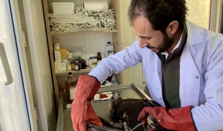 DKMP'de görevli veteriner hekim Selçuk Albayrak tarafından alınan kartal, tedavi ve rehabilitasyon sürecinin ardından doğaya salınacak.