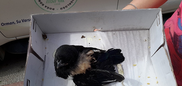 Konya'da, yaralı halde bulunan yavru karga tedavi altına alındı.