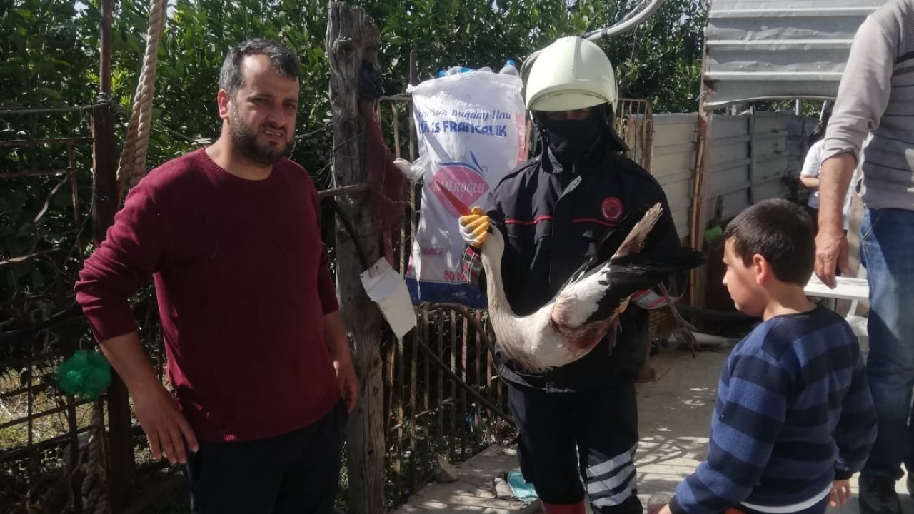 Ekiplerce teslim alınan leylek, Doğa Koruma ve Milli Parklar Hatay Şubesi'ne gönderilerek tedavi altına alındı.