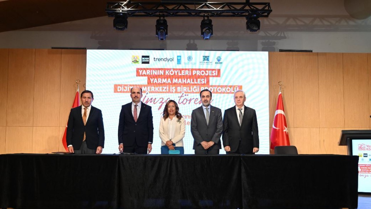 Birleşmiş Milletler Kalkınma Programı (UNDP), Konya Büyükşehir Belediyesi, KTO Karatay Üniversitesi ve Karatay Belediyesi tarafından Trendyol sponsorluğunda hayata geçirilecek “Yarının Köyleri Projesi” Yarma Mahallesi Dijital Merkezi iş birliği protokolü imza töreni düzenlendi.