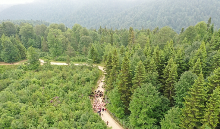 Yaylacıların adeta şenlik havasında geçen göç yolculuğu drone ile görüntülendi.