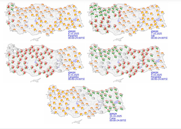 Meteoroloji Genel Müdürlüğü'nün tahminlerine göre; salı ve çarşamba, iç ve batı kesimlerde yağış beklentisi var.