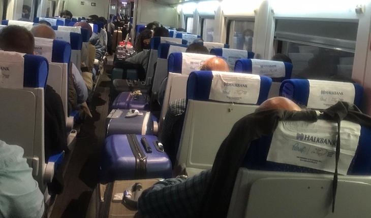 Bilecik'ten Konya'ya giden Yüksek Hızlı Tren (YHT) ile seyahat eden bir vatandaş, valiz yoğunluğu yüzünden 1,5 saat ayakta yolculuk yapmak zorunda kaldı, numaralı yerine hiç oturamadı.
