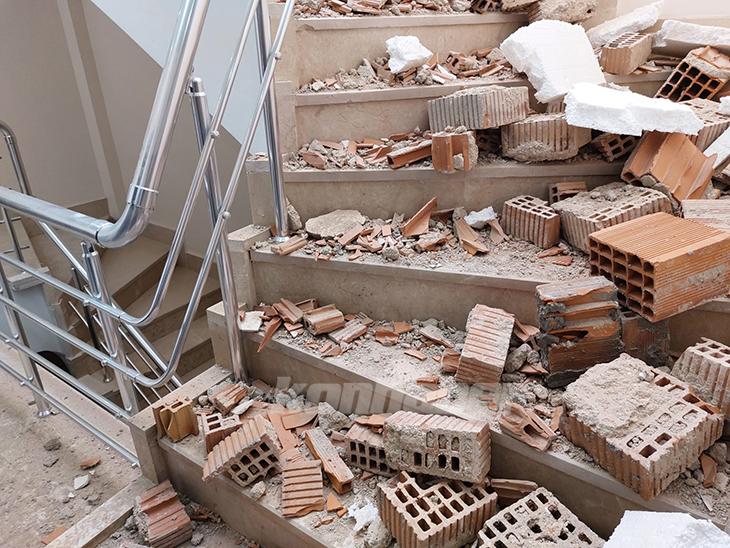 kaletesiz iş sırasında kalitesiz duvar yıkılmış.