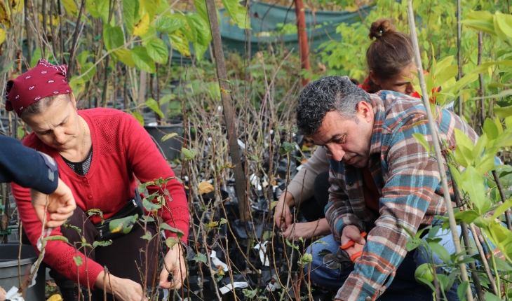 Kadınlar aşılamanın yanında fidanların budamalarını ve temizliklerini yaptıktan sonra satışa hazır hale getiriyor.