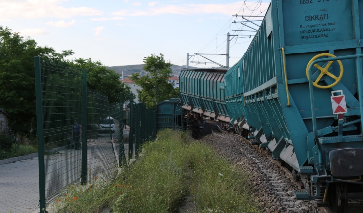 Kayseri'den Karabük'e demir madeni taşıyan yük treninin bir vagonu, Şefaatli ilçesi yakınlarında raydan çıkarak devrildi.