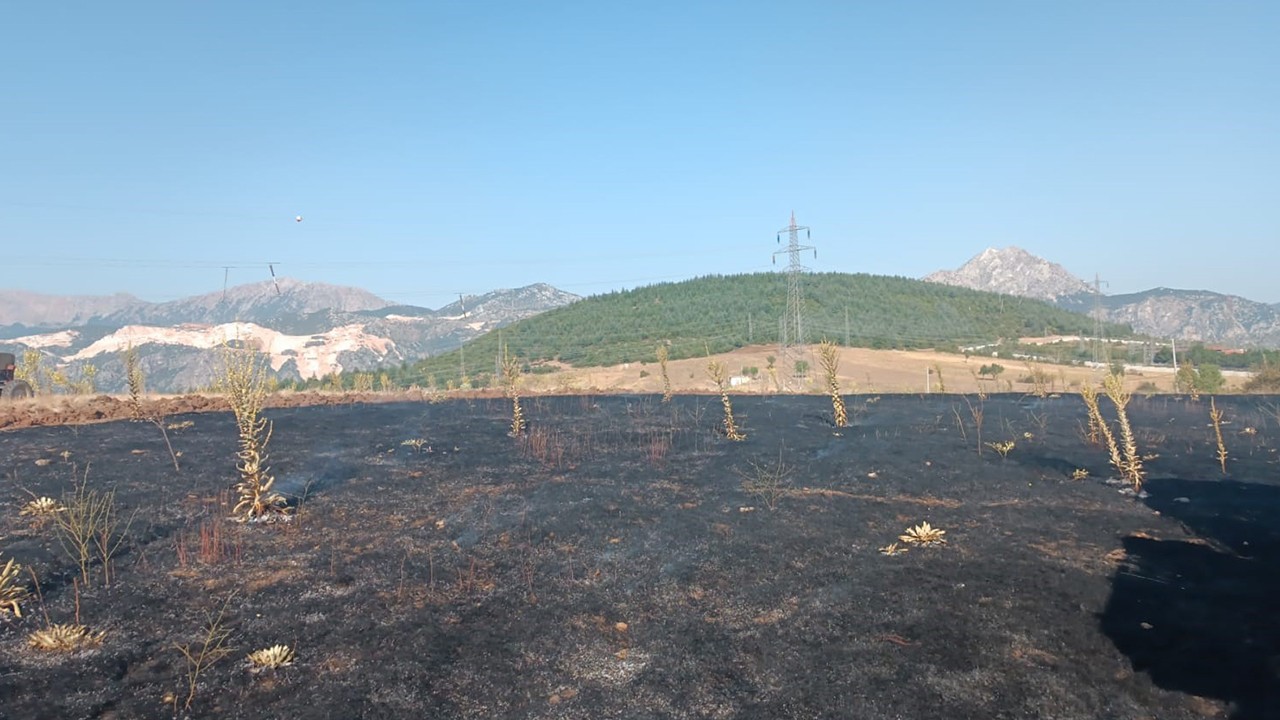 Isparta'nın Eğirdir ilçesinde bir karganın yüksek gerilim hattına çarpması sonucu çıkan yangında 2 dönümlük otluk alan zarar gördü.