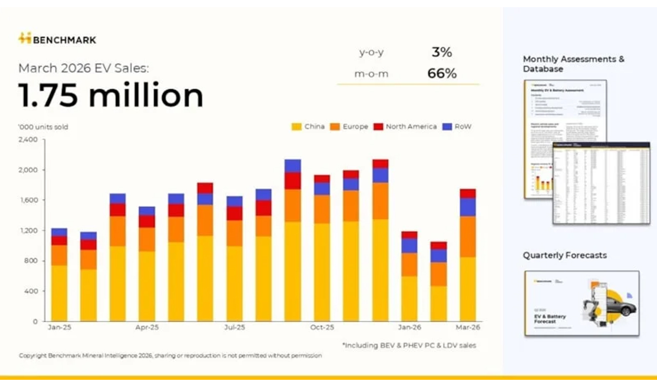 Danışmanlık şirketi Benchmark Mineral Intelligence'ın verilerine göre, dünya genelindeki yüksek akaryakıt maliyetleri, tüketicileri doğrudan elektrikli araçlara yönlendirdi.