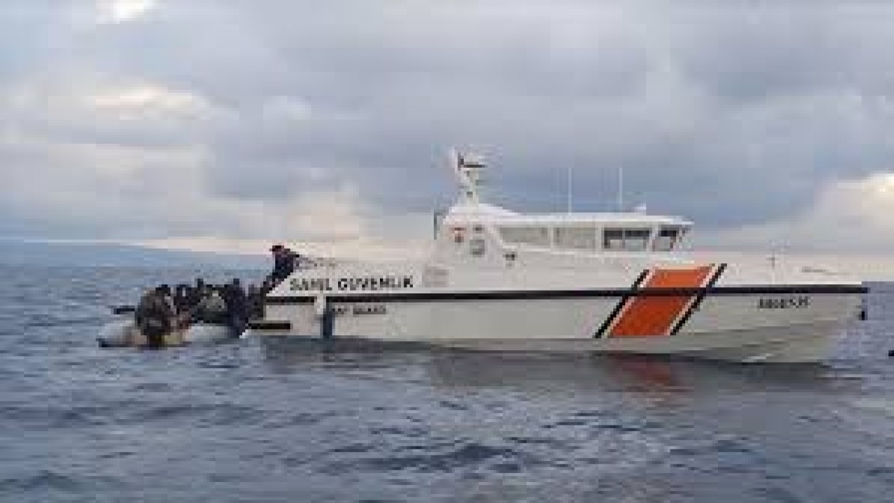 Lastik botta bulunan düzensiz göçmenler bölgeye intikal eden Türk Sahil Güvenlik botu tarafından kurtarıldı."