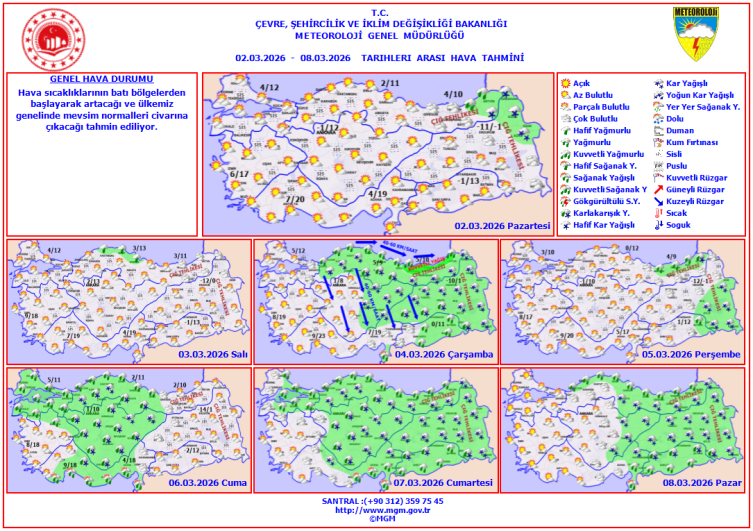Hava sıcaklıklarının batı bölgelerden başlayarak artacağı ve ülke genelinde mevsim normalleri civarına çıkacağı tahmin ediliyor.