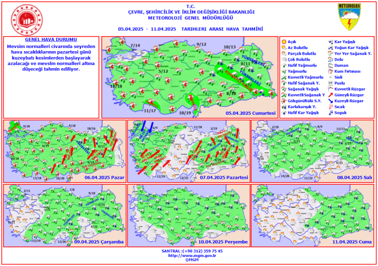 Ülke genelinde mevsim normalleri civarında seyreden hava sıcaklıklarının, pazartesi gününden itibaren kuzeybatı kesimlerden başlayarak mevsim normallerinin altına düşeceği tahmin ediliyor.