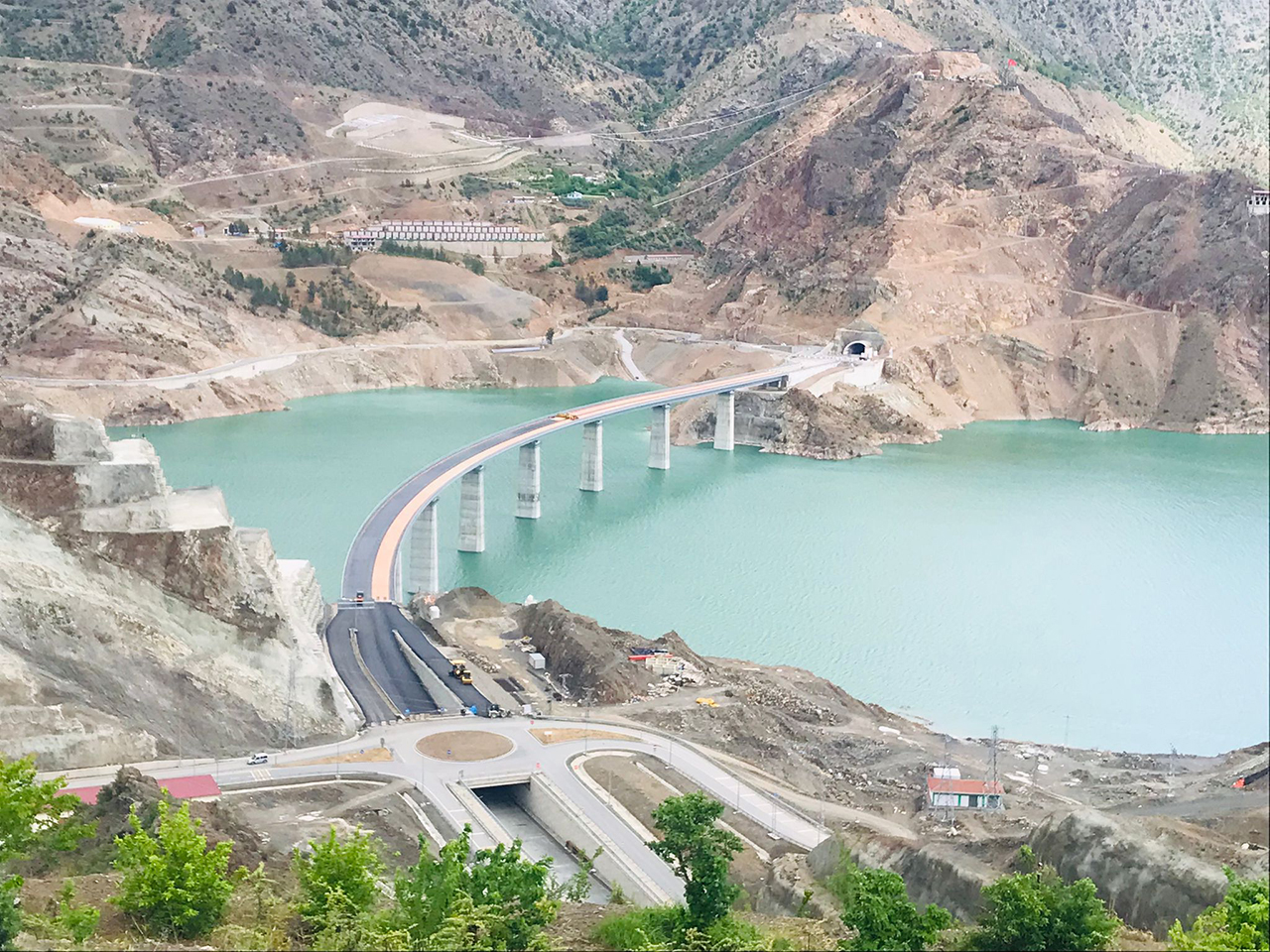 Temelden 275 metre yüksekliğiyle kemer baraj sınıfında Türkiye'nin birinci, dünyanın 5'inci en yüksek barajı olan Yusufeli'nin faaliyete alınmasıyla su altında kalan ilçe merkezinin taşındığı yeni yerleşim yerine ulaşımı 16 kilometre kısaltacak viyadükte çalışmalar sürüyor.