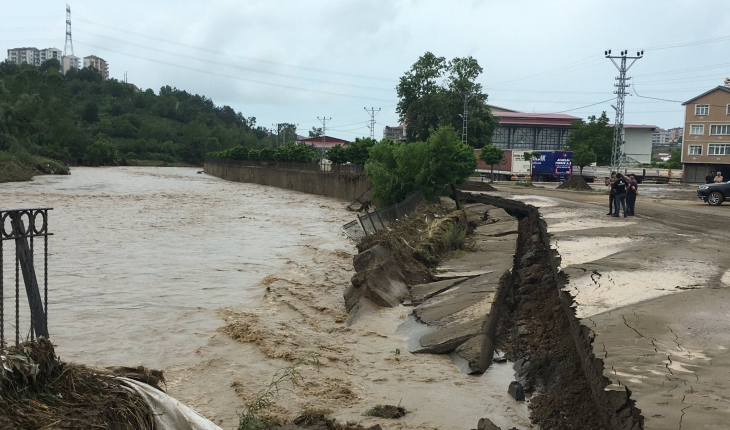 Alaplı Çayı'nın taşması nedeniyle kapalı pazar yeri mevkisinde de istinat duvarları ve yolun bir bölümü çöktü.
