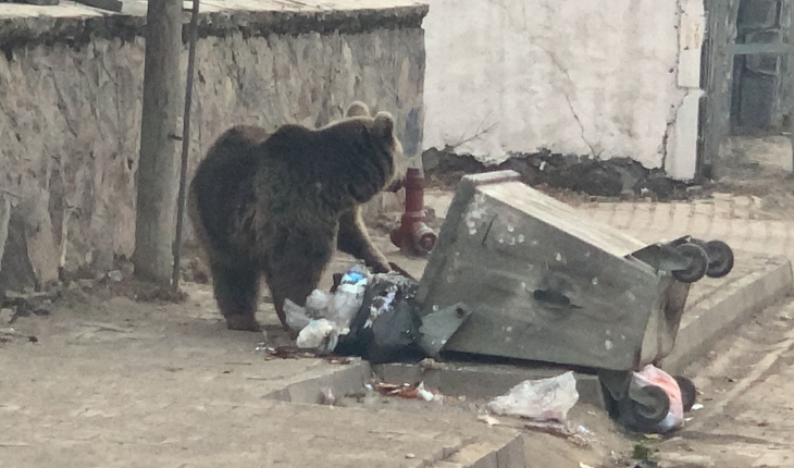 Kars'ın Sarıkamış ilçesinde aç kalan yavru ayı ilçe merkezine indi. Bir süre çöp konteynerini karıştıran ayı, umduğunu bulamayınca bölgeden uzaklaştı. O anlar kameraya yansıdı.
