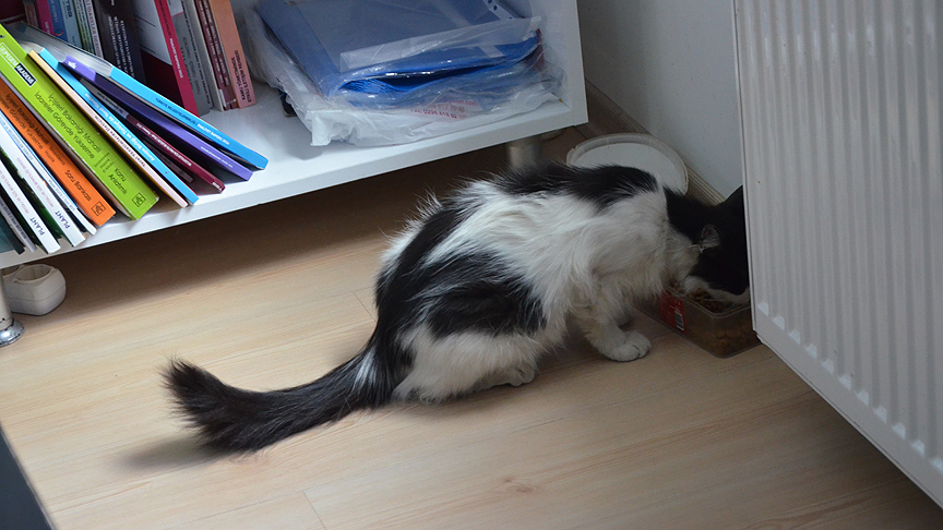 Uçar, iki yıl önce bir anne ve 5 yavru kedinin belediyenin kapısına bırakılmasıyla kedilere bakmaya başladıklarını anlatarak, "Ben onlara dışarıda mama vermeye başladım. Yaz sonuna kadar 2 yavru kaldı. Kışa doğru içeri girmeye başladılar benimle birlikte. Sonra odama kadar geldiler. Burada beslemeye başladım." diye konuştu.