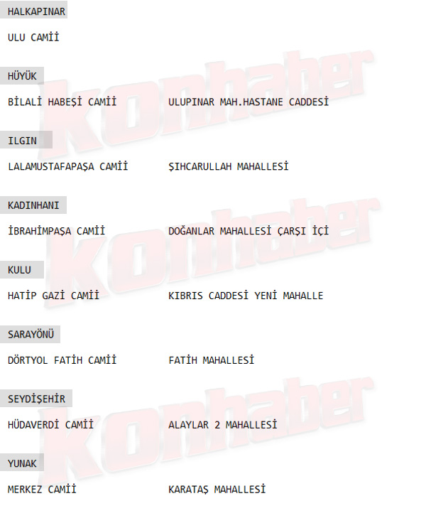 Konya'da bu yıl 32'si merkez ilçelerde olmak üzere toplam 59 camide hatimle teravih namazı kıldırılacak.
