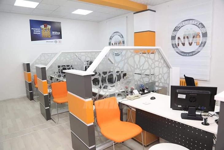 "Konsept Nüfus Müdürlüğü projesi ile hizmet birimlerinin standartlaşması, yüksek teknolojik altyapıyla hizmet verilmesi ve özgün bir kurumsal kimlik kazanılması sağlandı. Çalışma alanının içerisinde konumlandırılan danışma alanı sayesinde vatandaşlarımızın kapı kapı dolaşmadan doğru ve yönlendirici bilgiye ulaşabilmeleri sağlanırken işlem süreleri de kısaldı.