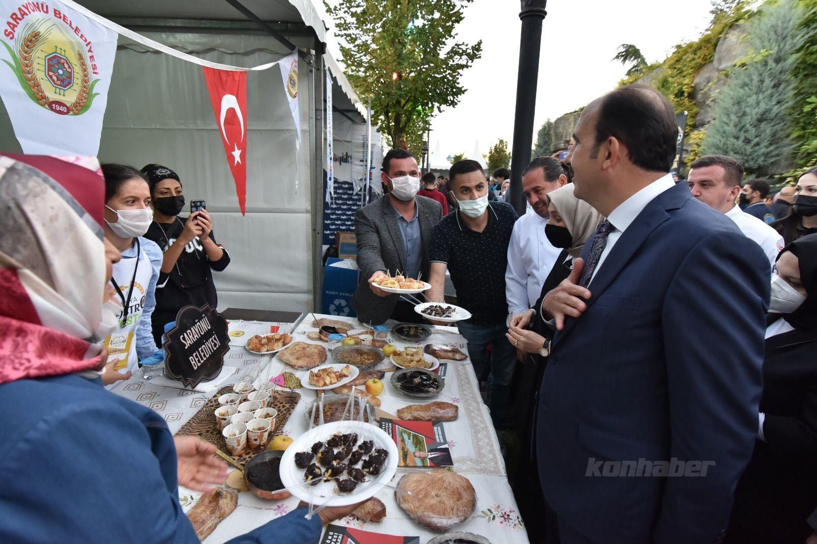 Konya Valisi Vahdettin Özkan ise, “Konya’mızda yemek bir medeniyet. Sağlıklı ve yeterli gıdaya erişimle ilgili oluşturulan bizim milli hedeflerimiz, ilgili bakanlıklarımızın ortaya koyduğu hedeflerin medeniyetimizin şekillendirdiği hedeflerle örtüşmesinden büyük bir mutluluk duyuyorum. Bu festival ile hem medeniyet tarihimizden gelen önemli bir mecranın ilimizde yeni nesiller açısından müşahede edilmesi hem de bütün dünyaya Konya’mızın bu zenginliğinin tanıtılması önemli. Bu vesileyle Konya Büyükşehir Belediye’miz başta olmak üzere bütün paydaşlara teşekkür ediyorum.“ diye konuştu.