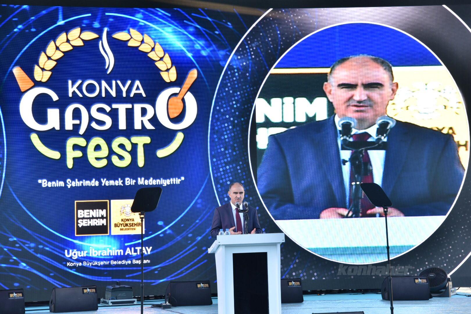 Uluslararası Tarım Şehirleri Birliği Başkanı ve Konya Büyükşehir Belediye Başkanı Uğur İbrahim Altay, dünyanın hiçbir şehrinde yemeğin böyle bir kültürle anlatılamayacağını, onun için festivali “Benim Şehrimde Yemek Bir Medeniyettir” sloganıyla gerçekleştirdiklerini ifade ederek konuşmasına başladı.
