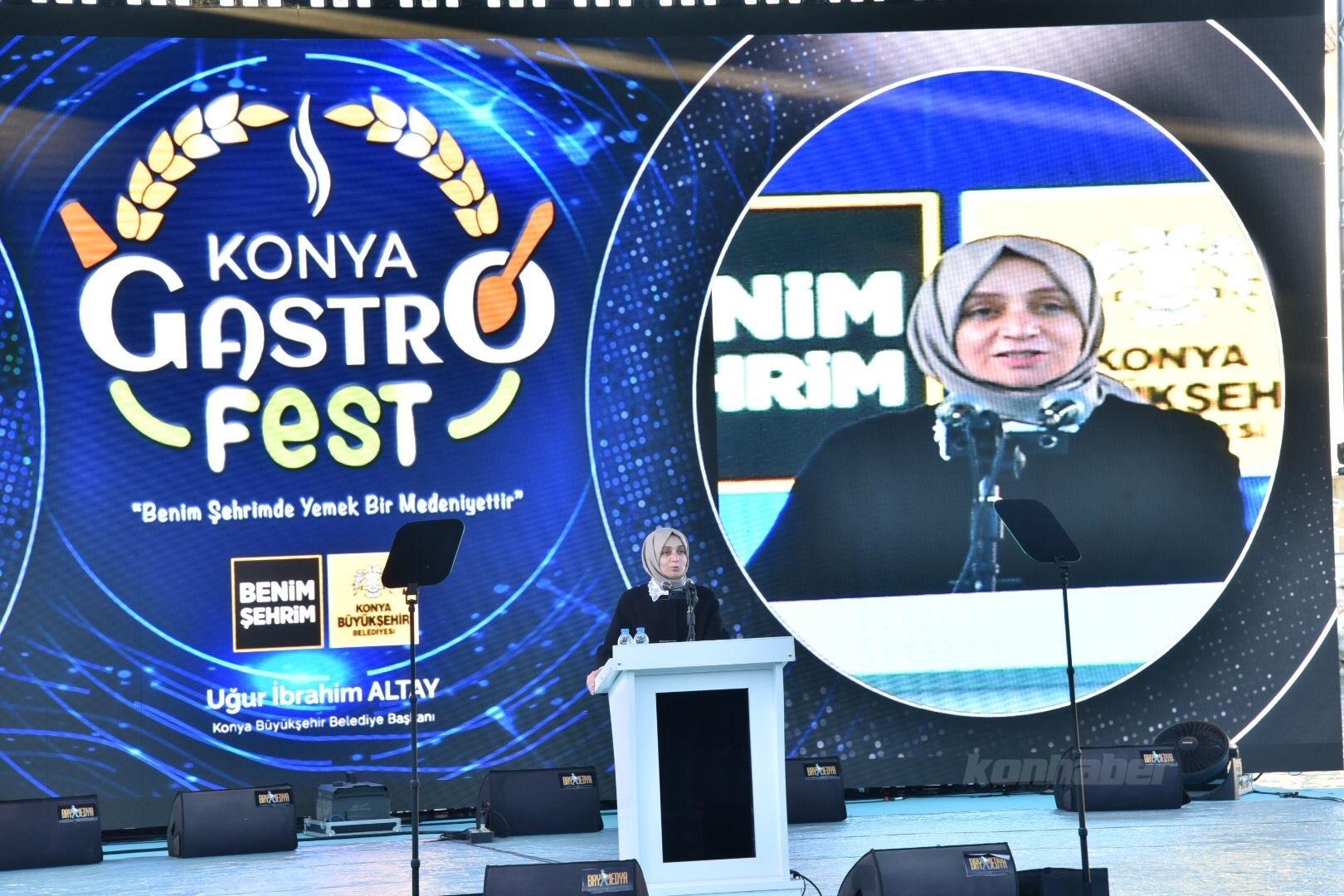 AK Parti Genel Başkan Yardımcısı ve Konya Milletvekili Leyla Şahin Usta, yemek ve sofra kültürünün bir medeniyet olduğunu ifade ederek, ülkemizde sofralara büyük ehemmiyet verildiğini anlattı. Usta, konuşmasını şöyle sürdürdü: “Bugün biz de aramızda bulunan şeflerimiz sayesinde pek çok farklı lezzetleri pek çok farklı yemeği beraber paylaşacağız. Dostluklarımızı artıracağız. Tanışıklıklarımızı artıracağız. Konya’nın yemek kültürünün aslında pek çok dünya mutfağıyla yarışabilecek düzeyde zengin olduğunu, başarılı olduğunu; bu vesileyle hem ülkemizde hem de uluslararası platformlarda tanıtmak için bir imkan ve fırsat oluşturmuş olacağız. Festival için hazırlık yapan Büyükşehir Belediye Başkanımız Uğur İbrahim Altay’a ve ekibine teşekkür ederim. Bu festivalle birlikte unutulmuş yemeklerin yeniden tanıtılması, evlerde yapılan yemeklerin yeniden gün yüzüne çıkarılması ve yeni tariflerin oluşturulması için yeni bir fırsat oluşturacak. Herkesin karnının doyduğu kadar gönlünün de doyduğu bir festival olmasını temenni ediyoruz.” dedi.