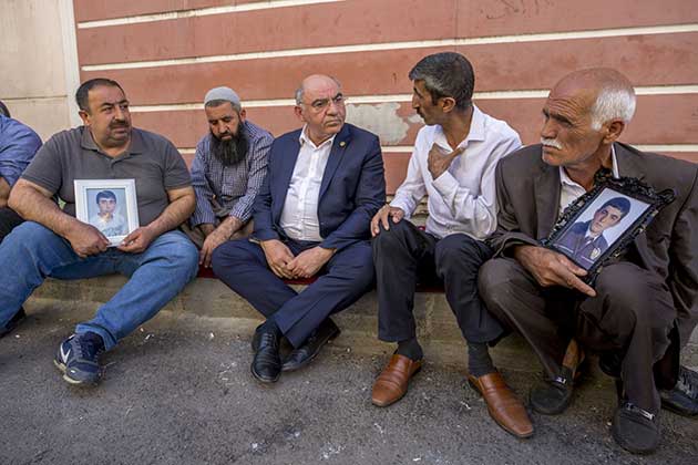 Ailesiyle Diyarbakır'a gelen AK Parti Amasya Milletvekili Mustafa Levent Karahocagil, HDP İl Başkanlığı önünde oturma eylemi yapan Diyarbakır annelerini ziyaret etti.