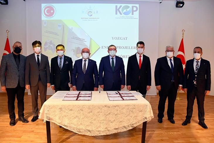 Sanayi ve Teknoloji Bakanlığına bağlı Konya Ovası Projesi (KOP) Bölge Kalkınma İdaresi Başkanlığı’nca 2021 yılı Mali Destek Programı kapsamında Yozgat’ta uygulanmak üzere finansman desteği almaya hak kazanan 3 proje, Yozgat Valisi Ziya Polat ve KOP Bölge Kalkınma İdaresi Başkanı Mahmut Sami Şahin tarafından imzalanarak hayata geçirildi.