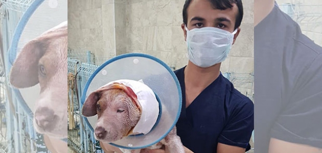 Gaziantep'te kulağı ve yüzü kesilmiş halde bulunan köpek tedavi edilmek üzere koruma altına alındı.