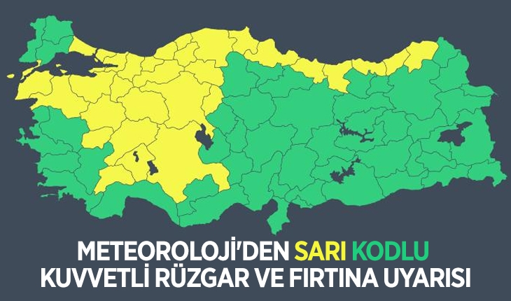 Meteoroloji Genel Müdürlüğü bazı illeri "sarı" kodla uyardı. Konya, Ankara ve İstanbul'un da aralarında olduğu 31 kentte bugün kuvvetli rüzgar bekleniyor. Yetkililer, ulaşımda aksamalar, çatı uçması gibi olumsuzluklara karşı dikkatli ve tedbirli olunması konusunda vatandaşları uyardı.