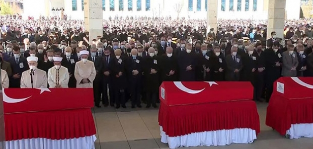 Yapılan dualar sonrasında toprağa verilen cenazelerin sarılı olduğu Türk bayrakları, Cumhurbaşkanı Yardımcısı Fuat Oktay, Milli Savunma Bakanı Hulusi Akar, İçişleri Bakanı Süleyman Soylu, Genelkurmay Başkanı Orgeneral Yaşar Güler ve Kara Kuvvetleri Komutanı Orgeneral Ümit Dündar tarafından ailelere teslim edildi.