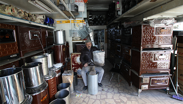 "Şehir merkezinde bulunan evler daha önce hep sobalıydı. Kalorifer sistemli yapıların çoğalması, elektrik sobaları, güneş enerji sistemlerinin kullanımının artması ve son zamanlarda doğalgazın yaygınlaşması el yapımı ve hazır soba satışlarında önemli ölçüde azalmaya neden oldu. Bundan 5 yıl öncesine kadar atölyede çıraklarla birlikte 5 kişi çalışırdık. O zamanlar işlerimiz çok yoğundu. Zamanla işçi sayımız azaldı. Babam da emekli oldu. Şu an sadece ben varım. Özellikle son zamanlarda havaların iyi gitmesi bizim satışlarımızı da etkiledi. Ayda bir kova alan kişi, bu yıl 3 ve 4 ayda bir kova almaya başladı. Önceki yıllar kendi ürettiklerimizin haricinde 3-4 kamyon soba ve 5-6 bin soba borusu alırdık. Şimdi bir kamyon soba, bir kamyon boru alıyoruz. Onları da satamıyoruz."