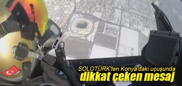 Mevlana diyarı Konya'ya taşınan Hava Kuvvetleri Komutanlığının akrobasi timi SOLOTÜRK, eğitim uçuşunda dikkat çeken mesaj verdi.