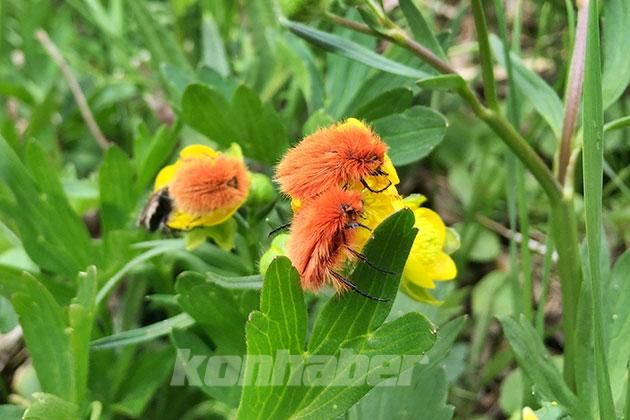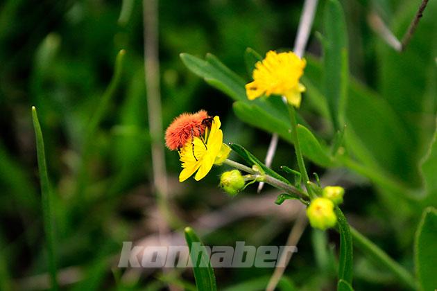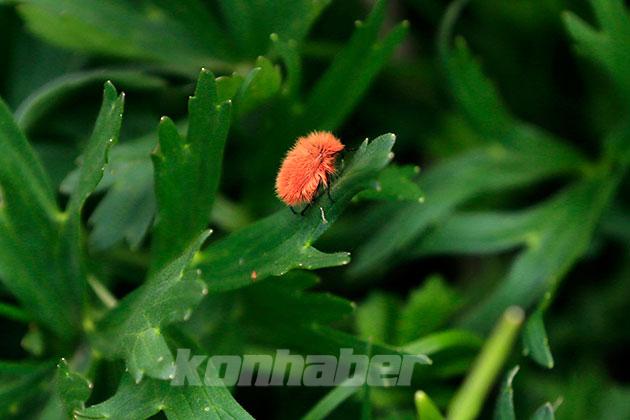 Turuncu ve kırmızının farklı tonlarında renklere sahip tüylerle kaplı böcekler Çam'ın ilgisini çekti. Aygün Çam, böceklerin fotoğraflarını çekerek, Fırat Üniversitesi Biyomühendislik Fakültesi Öğretim Üyesi Entomolog Prof. Dr. İnanç Özgen ile paylaştı.