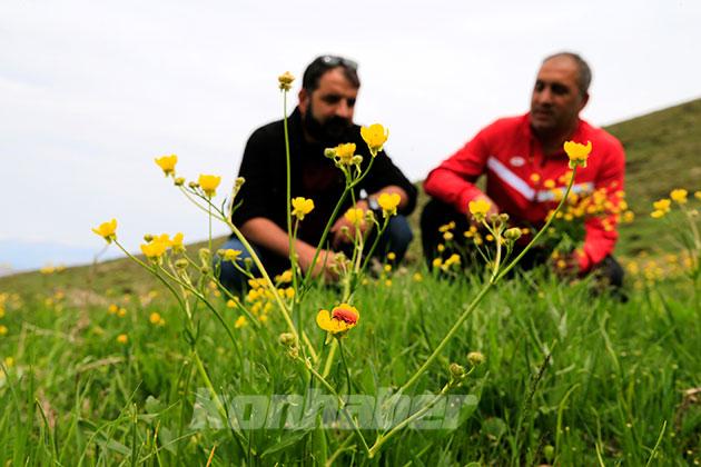 Kentte yaşayan aynı zamanda müzisyenlik yapan Yukarı Fırat Kültür, Sanat ve Arkeoloji Derneği Başkanı Aygün Çam, beste yapmak için çıktığı dağın zirvesinde düğün çiçeklerinin üzerinde renkleriyle göz kamaştıran böcek türünü fark etti.