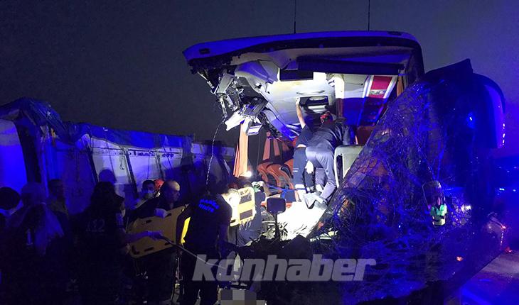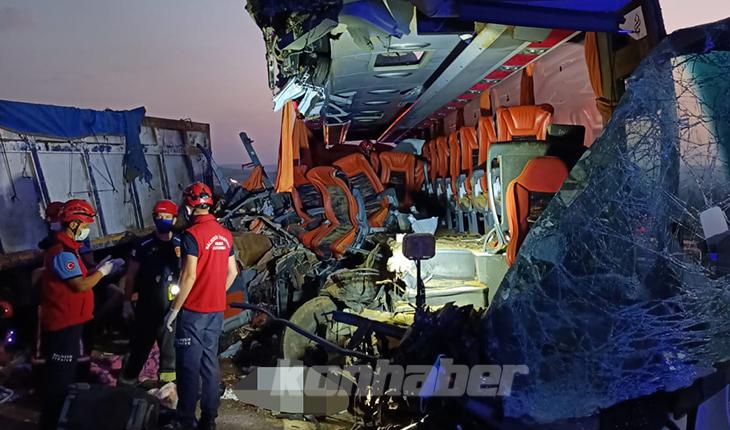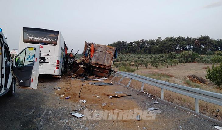 İstanbul-İzmir kara yolunda seyir halinde olan 55 AAD 477 plakalı yolcu otobüsü, sağ şeritte bekleyen Hasan K. idaresindeki 16 JNC 40 plakalı tırın römork kısmına çarptı.