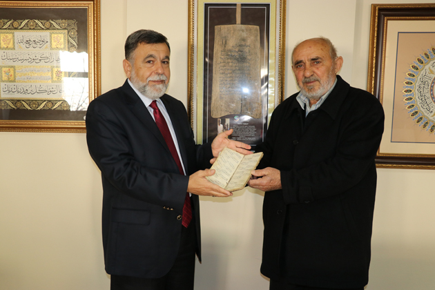 Figani'nin torunları Ahmet, Osman ve Salih Zeki İnci, Konya Yazma Eserler Bölge Müdürü Bekir Şahin'i ziyaret ederek, eserleri bağışladı.