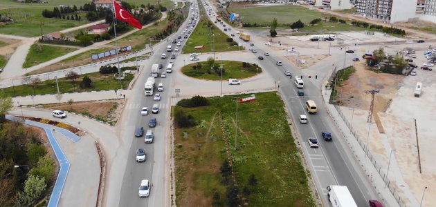 Ulaşımda 43 ilin geçiş güzergahındaki Kırıkkale'de yer alan kilit kavşakta, 'tam kapanma' öncesinde oluşan trafik yoğunluğu drone ile havadan görüntülendi.