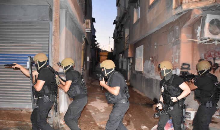 Özel harekat polislerinin de katıldığı eş zamanlı operasyonda ekipler, kapıları koçbaşıyla kırarak girdikleri adreslerde arama yaptı.