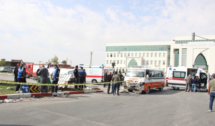 Kaza, dün sabah saatlerinde Hamidiye Mahallesi Yeni Adliye Kavşağı'nda meydana geldi. Evde sağlık hizmet biriminde görev yapan ve hastaneye hasta götüren Recep B. yönetimindeki 70 FN 172 plakalı ambulans, kavşakta İbrahim H. idaresindeki 70 M 195 plakalı yolcu minibüsü ile çarpıştı. Kazada ambulans ile minibüsün arasında kalan seyyar satıcı arabası ise refüje fırladı. Kazada ambulansta bulunan 5 kişi ve minibüsteki 4 yolcu ile seyyar satıcı yaralandı. Can pazarının yaşandığı kazada yaralılar ambulanslarla Karaman Eğitim ve Araştırma Hastanesine kaldırıldı.